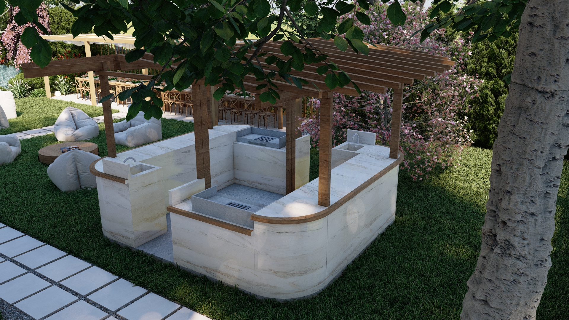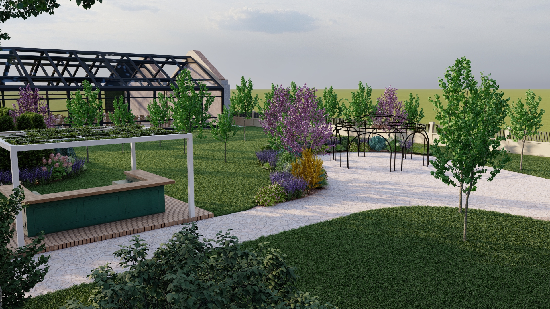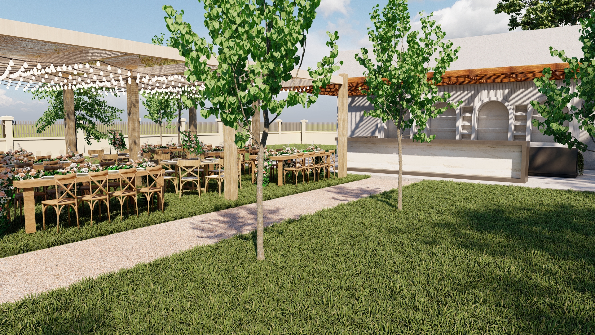Amenajarea propusă transformă livada într-un spațiu multifunctional destinat evenimentelor, unde natura devine fundalul principal al experiențelor sociale și culturale. Designul urmărește crearea unui echilibru între funcționalitate și peisaj, oferind zone deschise pentru evenimente, dar și colțuri mai intime pentru relaxare.